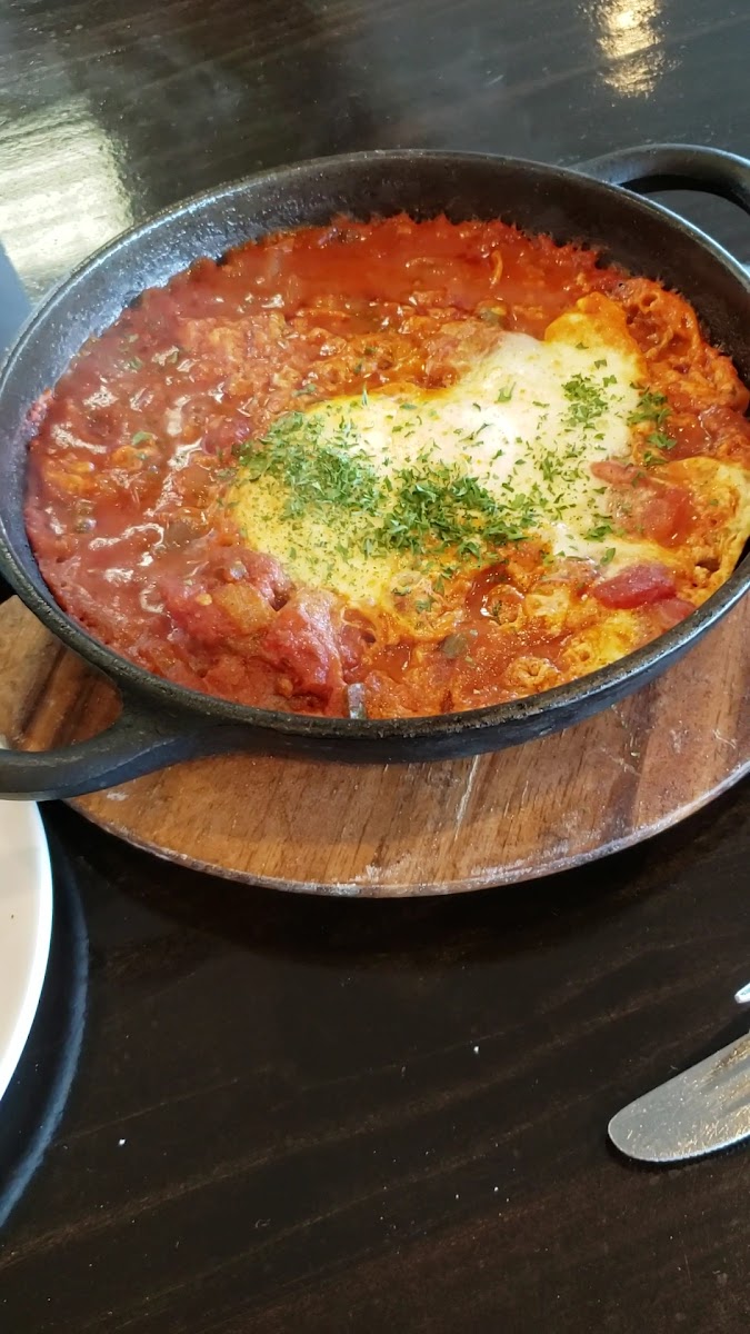 Eggel Bagel Deluxe Sandwich and Shakshuka
